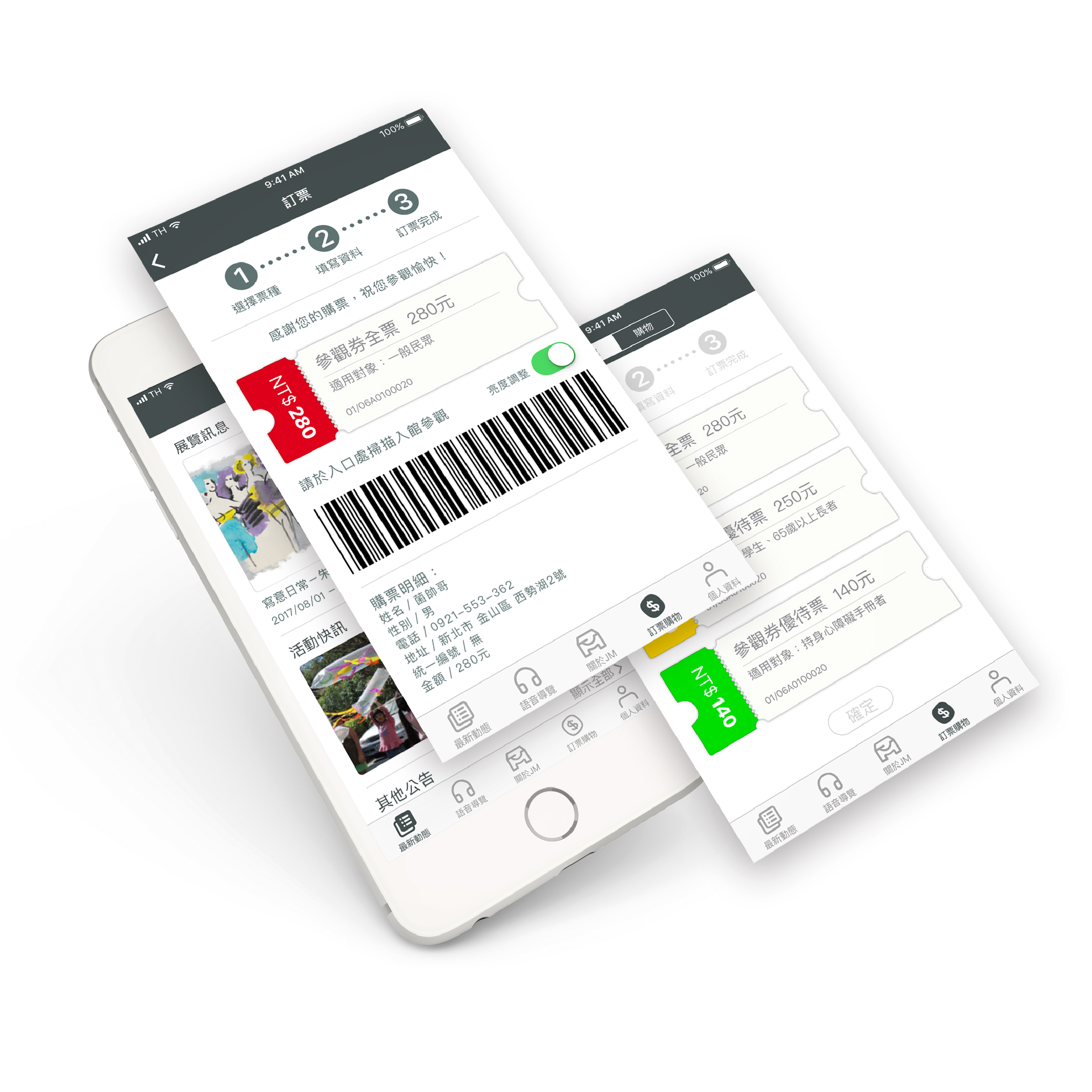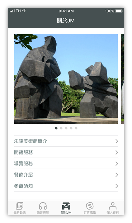 示範最新動態、語音導覽、訂票流程。