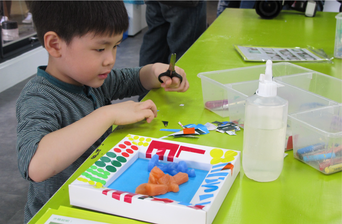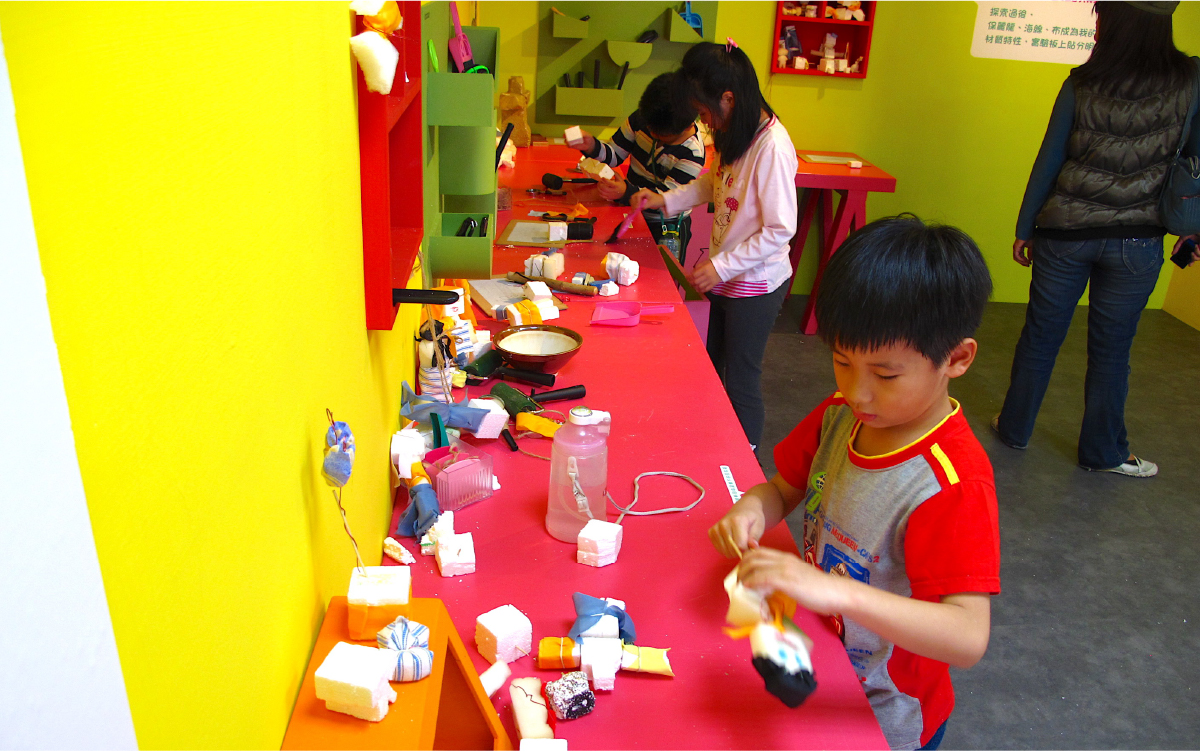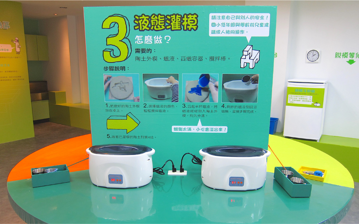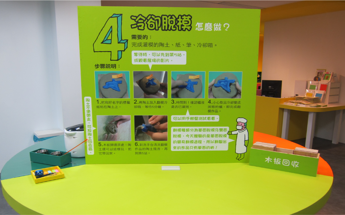 敲敲敲!雕塑探索工場 朱銘美術館大部分作品雖然看起來是很堅固的金屬材質,朱銘是用生活中常見的保麗龍、海綿翻銅製成的,還特意保留了原本材質的特色,讓作品更有趣了!這次教育展是介紹什麼是翻模,了解藝術家用不容易保存的材料做成作品後會利用「翻模」的方法,複製出一模一樣的作品,改變作品的材質。展場視覺設計用插畫繪製有趣和有想像力的簡易的翻模過程,還有雕塑工場裡的翻模小精靈帶領大家了解翻模複製與材質變換的趣味。 展場引導DM 兒童學習卡 DIY學習包使用說明書 展場規劃示意圖 展場照片